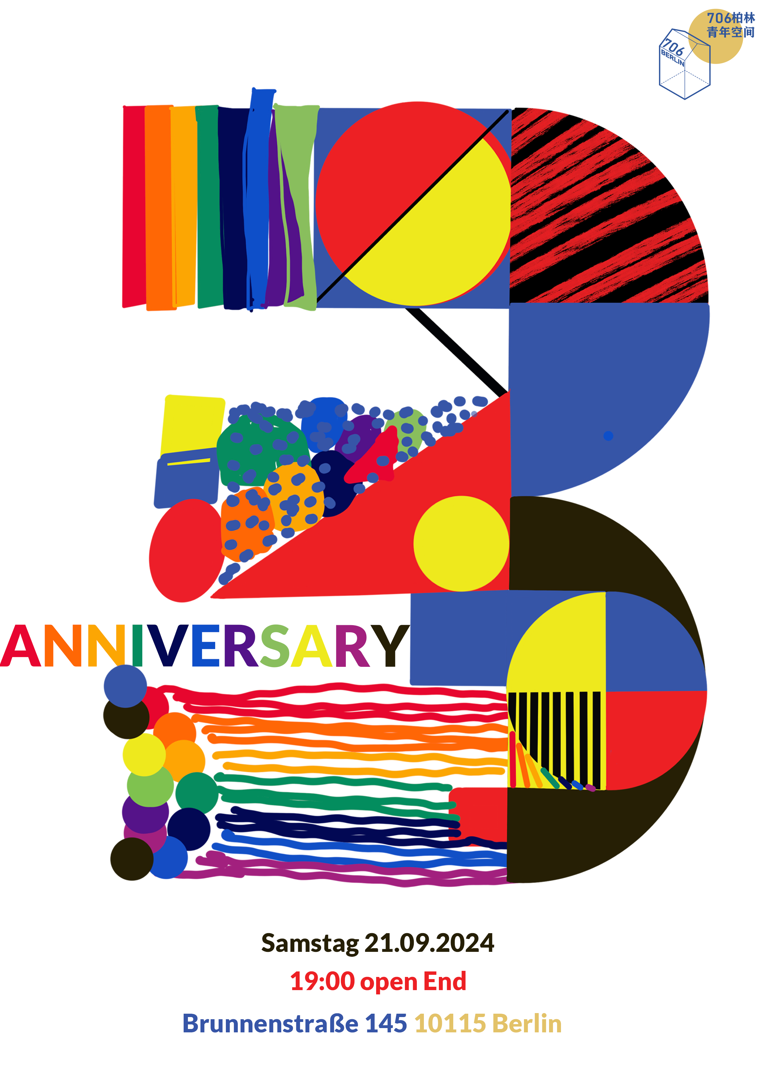 很快「706柏林」就要进入第四年了,未来还是会有风有雨,这叶小舟也还在前行,在各位朋友的见证和扶持下。 今天,我们热情邀请各位关心「706柏林」成长的朋友和伙伴,来参加我们的三周年庆典: 时间:2024年9月21日(周六) 19.00开始 - Open Ending 地点:Brunnenstraße 145, 10115 Berlin **酒水免费** 现场会有好朋友和来自「706柏林」的惊喜小礼。 周末见!