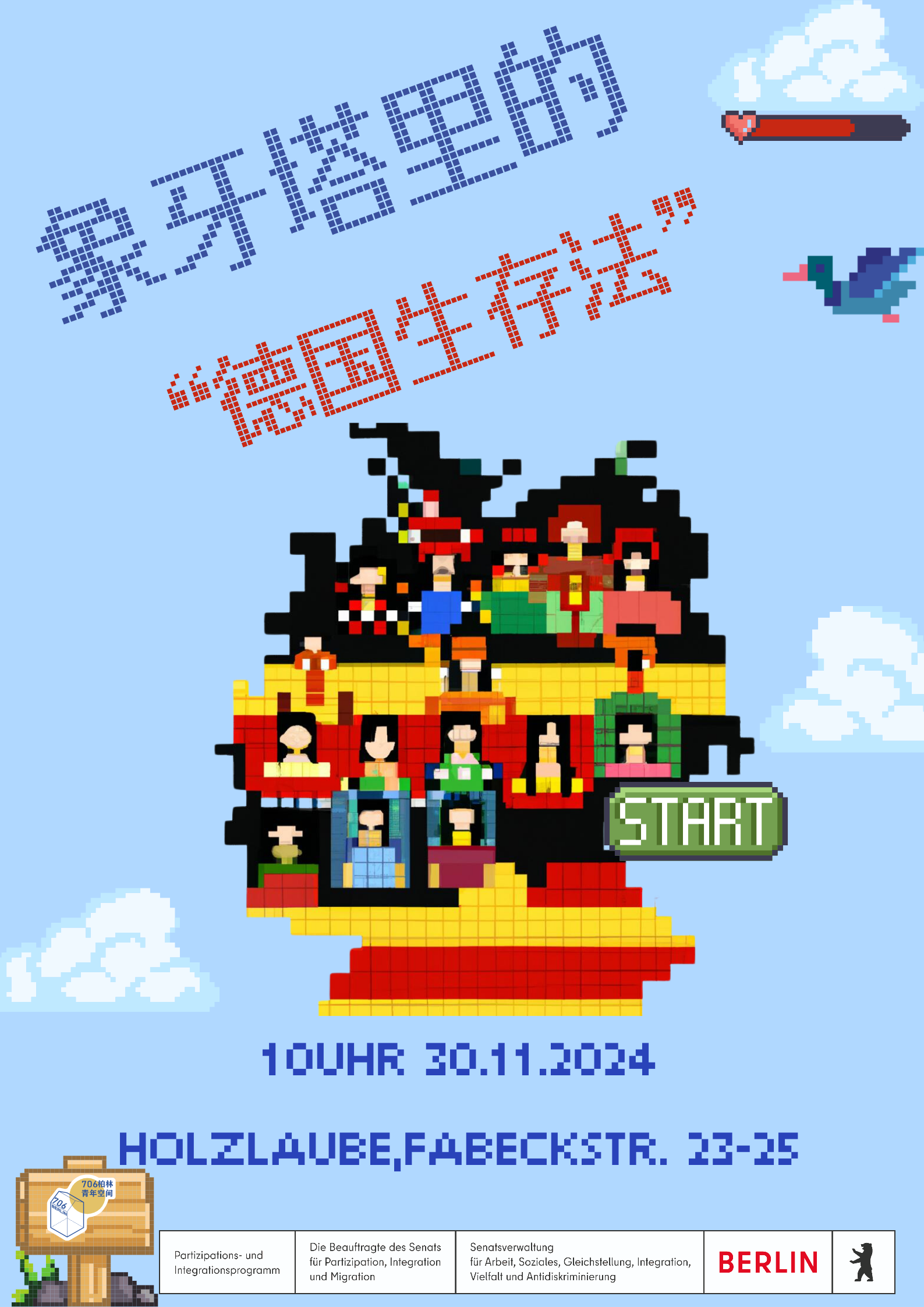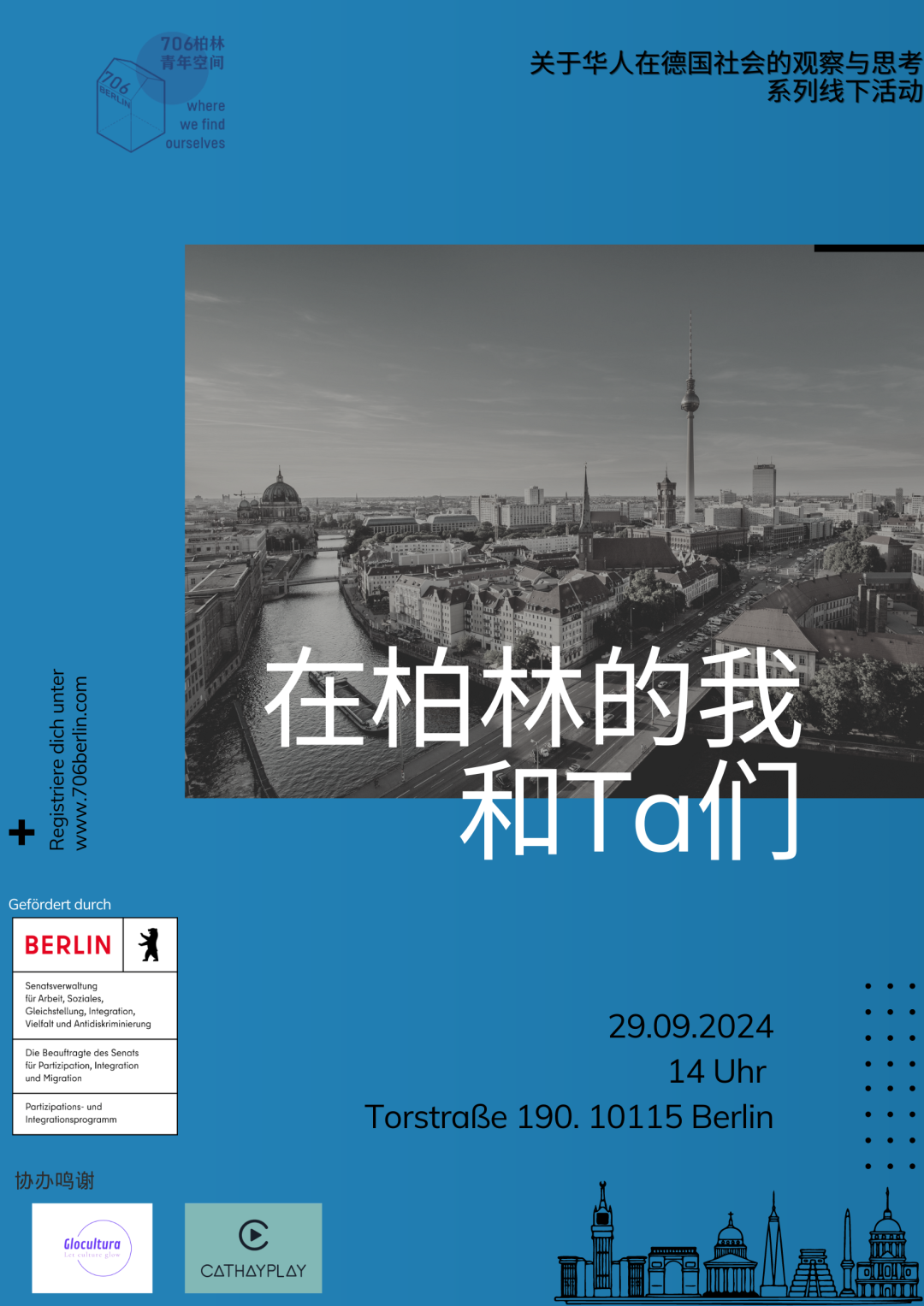 在德国社会中,移民深刻地塑造着我们的城市、工作场所和邻里关系。有关融入、参与和社会凝聚的问题,始终是公共讨论的核心。 那么,作为移民、本地居民、机构与社区,我们如何在“陌生”与“家”的感受之间找到新的平衡? 在这个互动式工作坊中,Xiyu和Haocheng将从不同角度探讨移民、融入与归属感的主题。通过游戏互动,小组讨论,个人反思和理论启发,我们将一起思考归属感是如何产生的,以及排斥和边缘化又是如何发生的。 工作坊的目标是:帮助大家获得新的视角,反思自身经验,并共同发展想法——如何让我们的共同生活更加包容,真正惠及所有生活在这里的人。 该活动为C*SPACE Learning Program的一部分,更多安排可访问: https://c-space.eu/en/programs/europelab2025/ 🌏 ⏲️活动时间 2025年9月22日(周一) 16:00-20:00 🔆活动地点 C*SPACE Berlin Langhansstr. 86, Pankow-Berlin 🟩活动语言 德语(讨论可中文) 🎉706柏林专属票(仅适用于本工作坊) 🌟前10位报名者与协会成员免费参与🌟 💼工作人员 5€ 📚学生 3€ 🍬请直接给我们发邮件并注明“名字+票型”报名:info@706berlin.com 🎨工作坊带领人 Xiyu 拥有跨文化交流的学术背景,目前担任波茨坦应用技术大学国际处的项目协调员,为国际学生的学术旅程提供支持。她也是706柏林协会的活跃成员。在德国生活了十多年的她,通过在高等教育领域的工作和社区参与,将中国视角与欧洲经验融为一体,致力于弥合文化差异,促进参与,并创造包容性空间以实现相互学习与交流。 Haocheng 曾为萨克森州一反歧视咨询中心专员,作为一名反种族主义专业人士,他坚信善良——无论是沉静的还是激烈的——都是实现正义与变革的强大工具。尽管他并非在欧洲长大,但他始终秉持着欧洲不断演进的身份认同核心价值——即对包容、和平与人人享有的人权的共同承诺。 插图:ins @mfallada