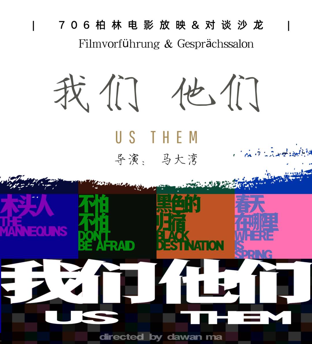 屎、尿、奶、血 融合在一起,就是孝道 我 出生 跪下 站起来 被打倒 站起来 被打倒…… 打倒他们 然后死亡 就是孝顺的命运 我 荒诞、害怕、愤怒、美丽、颤抖 呐喊、无助、恶心、惊悚、渴望 我 想爱、想死、想狂欢、想杀戮 但我最想要一个拥抱 血液燃烧我的灵魂 爱情绑架我的肉体 传承是最大的诅咒 红色和蓝色 是道德和死亡的交响曲 它唤醒了我所有的欲望,调动了我生理的所有反应和心理的所有情绪 它展现了人性中最大的恶以及最大的善 它用最魔幻的光影冲击道德的天理 它用最荒诞的场景讲述最现实的故事 它用最华丽的色彩祭一场悲剧的狂欢 首次观影活动映后感——@晓晓 两个多月前,我们第一次进行了《我们他们》的放映和对谈活动。影片把所有的情绪都揉进了C*Space的白色空间里,氛围之下现场讨论也空前热烈。导演马大湾与对谈嘉宾王歌老师配合着现场的观众共同完成了一场跨思潮,跨文化和跨代际的对话。更多现场精彩,可浏览来自本次观影共话嘉宾皮皮的首次观影会后感受——我们和永远的他们。 并且,我们也获得不少关于错过了首场活动的朋友们呼唤:“能不能再办一次”,“在哪还能看到影片”...以及现场朋友们的询问“下次是什么时候”等等。所以,这个八月末,我们带着所有热诚,欢迎所有朋友来参与我们第二次的观影和对谈活动。 这是一部由十二个独立故事组成的短片集,这些短片的灵感源自中国传统的二十四孝故事,《卖身葬父》、《埋儿救母》和《卧冰求鲤》都是在中国家喻户晓的经典故事。每个短片以现代的视角和手法重新诠释这些传统故事。 这些故事在现代人的理解中已经变得十分抽象,且只具备一些比喻和象征意义。通过新的叙事手法和视角,影片将这些传统的孝道故事与现代社会的背景结合在一起,探讨当代社会中的亲情和伦理问题。 每个短片不是对原故事的复述,而是通过人物的内心世界、社会的变迁以及价值观的冲突,来呈现“传统美德”在现代社会中的“新状态”。对传统孝道的现代解读,探讨在快速变化的社会环境中,孝道的意义和存在的形式。 每个故事都包含了对道德困境的思考,通过传统与现代的对比,影片展示了社会发展对家庭结构和亲情关系的影响。影片将观众带入一个既熟悉又陌生的“孝道世界“,引发对亲情、责任和社会价值新的思考。 活动时间 2024年8月31日(周六)19:00 活动地点 Torstraße 190. 10115 Berlin(入口在门牌号右边) 活动费用 免费(欢迎自由捐赠) 活动流程 19:00 入场 19:30 开始放映 21:30-21:40 休息21:40-22:30 影后对谈&讨论(共话嘉宾:皮皮,原名冯丽,作家、教授,导演马大湾的母亲。目前旅居德国。出版有长篇小说《渴望激情》《比如女人》《爱情句号》《所谓先生》《如归》等;短篇小说集《全世界都8岁》等,话剧剧本《独自温暖》) 报名链接: https://docs.google.com/forms/d/e/1FAIpQLSf409wEgkwpi4LPZIfdCL0Kpeh4AcHRXC5PSSpxtBKEjKPRTw/viewform