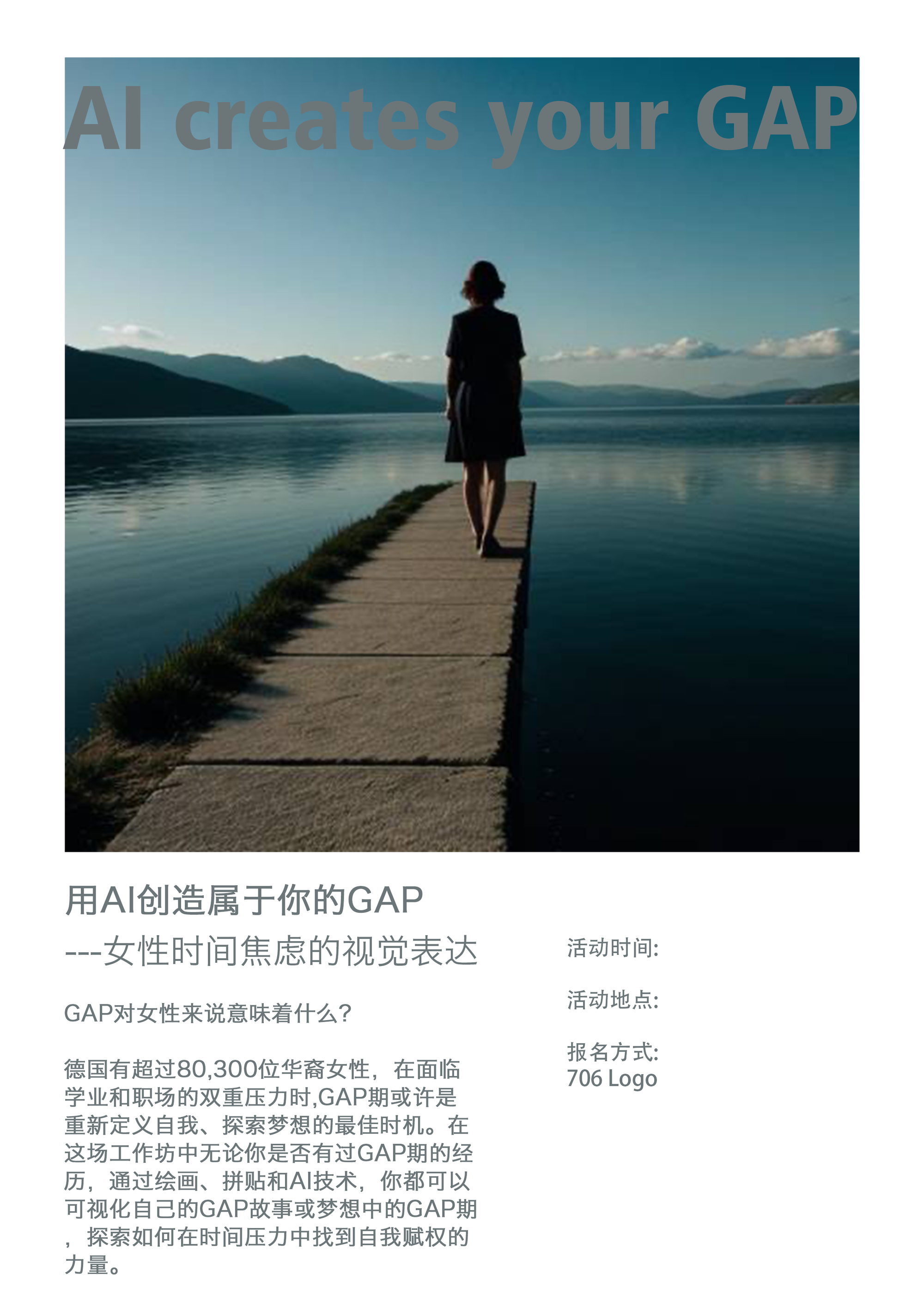 德国有超过80,300位华裔女性,她们不仅要应对学业和职场的挑战,还要平衡家庭和社会期望。四面楚歌之下,她们似乎也失去了想要停下来的自由。相对慢节奏,也不顾死活,没人在乎和没人榨汁(judge)你的柏林生活,迎面撞上来自遥远东方的哭声,留下万般无措风中凌乱的纠结。学业、事业,家业,业业“生搁”。该怎么选择才不耽误,还是先都不选,gap一下,会怎么样? 俗话说,在德国留学的三年将会是你人生五年中最快乐的七年。戏谑下,“延期毕业”对于中式学业来说,似乎是一个无法原谅的事情,而你对此是否也感到过压力重重? 留德华生的困难往往都有几大原因:语言障碍、学业要求和文化适应等。这些也足以让国际学生无法按时毕业。据研究统计,国际学生的辍学率在学士阶段有45%,硕士阶段为29%(Technische Universität Chemnitz,2019,https://www.tu-chemnitz.de/tu/pressestelle/aktuell/9587/en) 作为已开始操持家业的女性,怎么处理个人理想和周边环境也是极为现实的问题。你是否满意现状,是要继续维持现在的生活,还是做出一点点改变尝试新活法。人生的确没有参考答案,但现代社会对女性评头论足的声音未曾停止过,于嘈杂中犹豫前行。 还是,你是否设想过拥有一段GAP期,但总因为不确定性而触碰又止,感到害怕? 在现代社会的快速节奏下,时间焦虑对女性来说意味着什么?毕业和职业发展的紧迫感,以及家庭和社会的期待。而GAP期,这个看似空白的时间段,或许正是重新定义自我、探索梦想的最佳时机。 在这场活动中,无论你是否有过GAP期的经历,都可以通过绘画,拼贴和AI文生图技术,探索并可视化你的GAP故事或梦想中的GAP期,一起探讨如何在时间压力中找到自我赋权的力量。 工作坊内容: 时间焦虑与GAP的跨文化背景: 深入探讨女性在跨文化背景下的时间焦虑,了解东西方文化对时间的不同理解,特别是在德国留学和职场背景下的挑战。 GAP故事创作: 真实与梦想的结合:如果你有过GAP经历,通过AI生成工具和视频创作出属于你的故事。如果没有GAP经历,设计并创造你梦想中的GAP期,用AI绘画工具和视频生成工具将你的梦想变为现实。 集体讨论与赋权体验: 与其他女性分享你的GAP故事或梦想,探索AI如何成为现代女性自我表达与赋权的强大工具。 活动时间 2024年9月14日(周六) 19:00 活动地点 Torstraße 190. 10115 Berlin 活动流程 19:00-19:30 自我介绍 19:30-20:00 概念导入 20:00-21:00 GAP故事创作 21:00-21:30 AI创作 21:30-22:00 自由分享讨论 活动费用 3€(含本人AI创作图像明信片) 活动要求 需带笔记本电脑配合AI生成(非Pad) 招募人数 15人 报名链接: https://docs.google.com/forms/d/e/1FAIpQLSelN6gDzlOoII5pL6TQOeQ0wfU_iva2Og0YiuW_pcoFpD2esg/viewform 发起人介绍: 潘思凡 艺术调解人,奥地利林茨艺术大学PhD在读,硕士毕业于柏林艺术大学艺术语境研究,研究重点是参与性艺术教育对边缘化群体(海外华人女性为切入点)的赋权性。通过运用AI绘画技术思考参与者在表达抽象情感的可能性,进一步思考参与性艺术教育在公共文化传播领域的发展潜力。