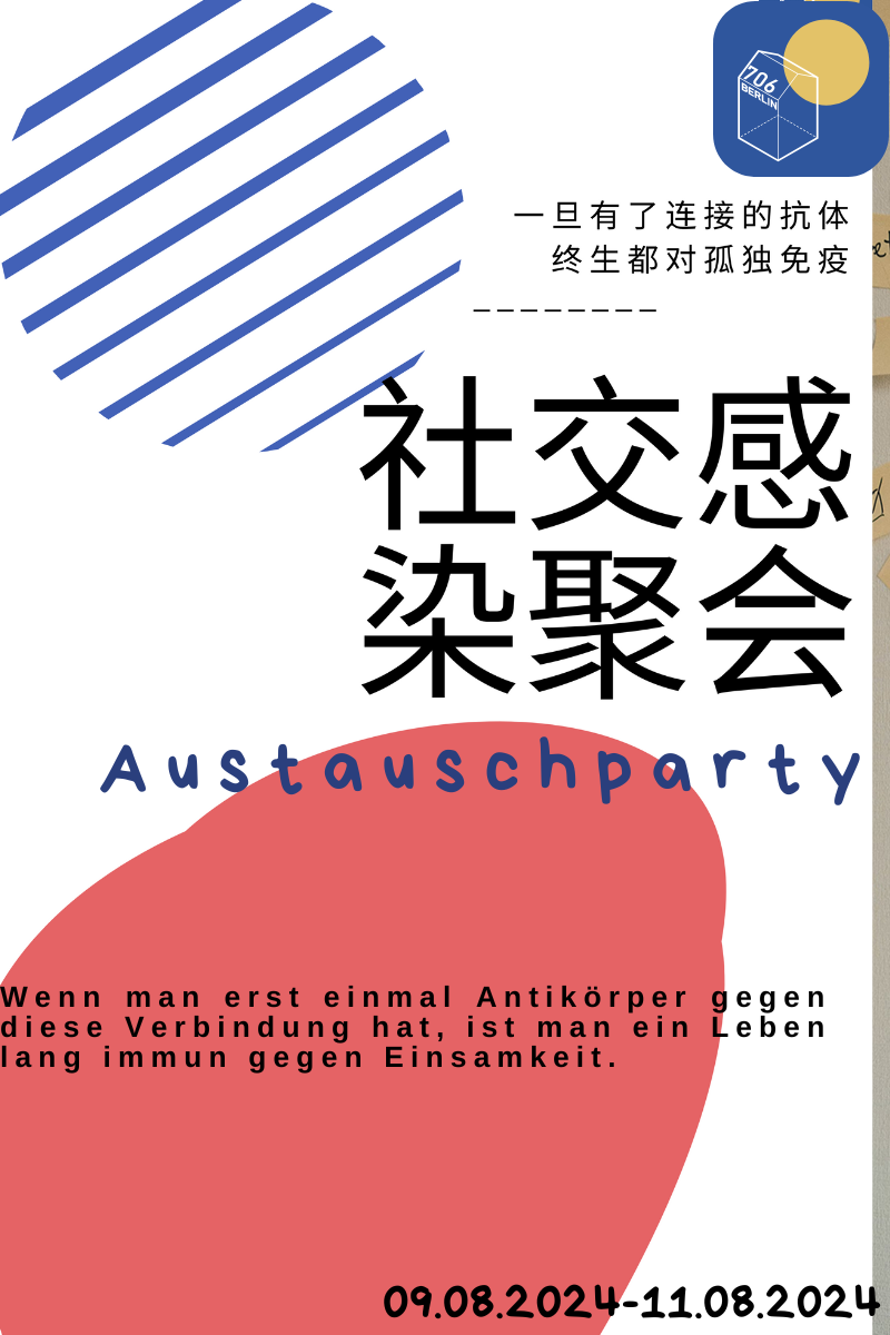 什么是「社交感染聚会」? 现代社会是由一个个独立的原子个人构成的整体。 这种独立一方面成就了现代人的独立人格,另一方面又带来独属于现代人的孤独与焦虑。而身处原子化社会,破除“孤独感”的唯一方式便是“与他人产生连接”。在这个城市,**由706柏林提供场地,我们邀请你一起发起或者参与活动,在这个空间内,我们一起聊聊哲学、艺术、音乐,或讨论异国之间的文化差异,分享自己的成长经历,任何话题都可以。** 在这快速的城市生活中,或者异国他乡的留学生活中,借此机会,面对面畅谈,分享创意,释放情绪,建立深度交流,使互不相识的我们产生了交集,感染了对方,从此不再是一个孤独的原子。我们相信每一场社交聚会的感染力,它会把温度和真诚带给更多人。这就是我们办这场活动的初心与目的。 「活动介绍」 1:「我那低俗的口腹之欲-食物的存在主义」 发起人:铁螺 **13:00-15:00 11.08.2024** 当人们聊到饮食问题,谈论的都是凌驾于食物本身的附加条件--囤积的压力,外界的眼光,自信的匮乏…而食物本身带来的感官体验却被我们忽视了。 在我们尝试与口腹之欲对抗时,食物自始至终还是伴随着我们。吃有吃的快乐,不吃也有不吃的爽快,但无论如何,食物与我们的联结真实存在着。 让我们来分享那些因为食物产生的好情绪或坏体验,看看那些被判为低俗的口腹之欲,是否也有它的价值? 2:「黑暗听歌会」 发起人:Woody **21:30-23:00 09.08.2024** 上一次你好好听一首歌是什么时候了? 这次,我们会在完全黑暗的环境中,关上所有的器官,只留下耳朵聆听音乐。从一首歌中,探索一个故事,了解一个人,分享一份感受。在音符里,在黑暗中,我们重新感受自身,体会人与人之间的联系。 3:「柏林徒步野餐」 发起人:老蔡 **8:00-13:00 10.08.2024** 柏林的夏天独一无二,白天既长黑夜又短,十分适合户外活动以享受热暖的季节。因为冷战时西柏林被关在柏林墙之内,所以城市面积没有过度地扩展到柏林城界之外,而保留了破坏程度比较低的自然环境。之前属于柏林墙死亡之带的 Tegeler FlieB现在是一片湿地自然保护区,非常适合以历史和自然环境融合为独特的体验。活动过程中我们会沿路摘一些野生水果并一起野炊。*路程长度约为12公里* 4:「柏林墙-冷战和二十一世纪的新围墙」 发起人:老蔡 **8:00-13:00 11.08.2024** 柏林在冷战分东西两块儿,变成政治思想矛盾的聚焦城市。本次活动带我们去参观两段平时见不到游客的柏林墙遗址,在它叙述的故事之中,咱们汇集一下世界上的围墙都在意味着什么,代表什么以及起什么作用,包含在内有过去、现在和未来的事儿。咱们再放飞一下念头,聊聊还有没有别的见解。 5:「我要高潮!」 发起人:晓晓&铁螺 **19:00-21:00 10.08.2024** 你是否曾在燥热的夜里辗转反侧,回想起自己青涩的性体验?是否因为缺乏经验和讨论对象,装出镇定自若的样子?是否担心享受性愉悦会被羞辱,或者不善于享受会被嘲笑? 很多女性在经历性探索时,常常会感到困惑和羞耻。欲望的火苗不仅没有减弱,反而愈燃愈烈。你或许想尝试一些小玩具,却不好意思去店里选购,不知道如何开始。 与其独自烦恼,不如来和我们一吐为快:我要灵魂的自由,还要肉体的愉悦。我要快乐,我要高潮!! 6:「《不想梦以及梦想》致郁与治愈」 发起人:晓晓 **19:00-21:00 09.08.2024** 这次活动将围绕我的硕士项目:一本基于我对43位抑郁症患者采访而设计的书《不想梦以及梦想》展开。通过这本书,我们希望能够提供支持、鼓励和理解,帮助更多的人了解和应对抑郁症。 7:「社群作为一种新的旅行方式」 发起人:Woody **15:30-17:30 11.08.2024** 经历两年的旅居后我开始思考,什么是一种有效的旅行方式?经历过小红书式的打卡,硬核式的徒步露营,随机式的街头抽取路人聊天,最终发现,社群可能是一种全新的旅行方式。每到一个城市都有据点,通过发起活动、申请沙发客等方式认识当地的小伙伴,透过他们的眼睛去全新地理解一个城市。 8:「聊聊你做过的记忆深刻的梦」 发起人:周日 **15:30-17:30 10.08.2024** 你还记得你做过的“很深刻”的梦吗?内容上涵盖去世的亲人/前任,不认识的还没出现的人/认识的不知道为什么会被梦到的人等;从时间感知上梦境的内容可能一直停留在某个固定的场景,像电视剧一样有些梦在固定的背景情境下连续地发生。已经过去的依恋和不舍的人在梦里的现在时态,并且你还记得这个梦,梦也影响了你在现实生活中的生活态度等情况。总之,你还记得什么,那些你记得的梦究竟有多么有趣/难忘?你的现实生活和梦境有着怎样的连接,并如何影响到你感知和认为的自我变化或是“成长”? 9:「小酒馆:谈性说爱」 发起人:周日 **21:30-23:00 10.08.2024** 主要通过“断手指”(用手指代表每个人的10次机会)游戏,将聊天主题限制在性这个话题,然后看看有哪些有趣的故事在保密不外传的活动空间内发生。如果有身体障碍有关人士,上述游戏方式将根据报名情况变更。 活动地点:柏林Kreuzberg,报名后通知。 报名方式:已加入群聊朋友在群里接龙;未加入群聊朋友则向邮箱:706berlinyouthcommunity@gmail.com发送报名。