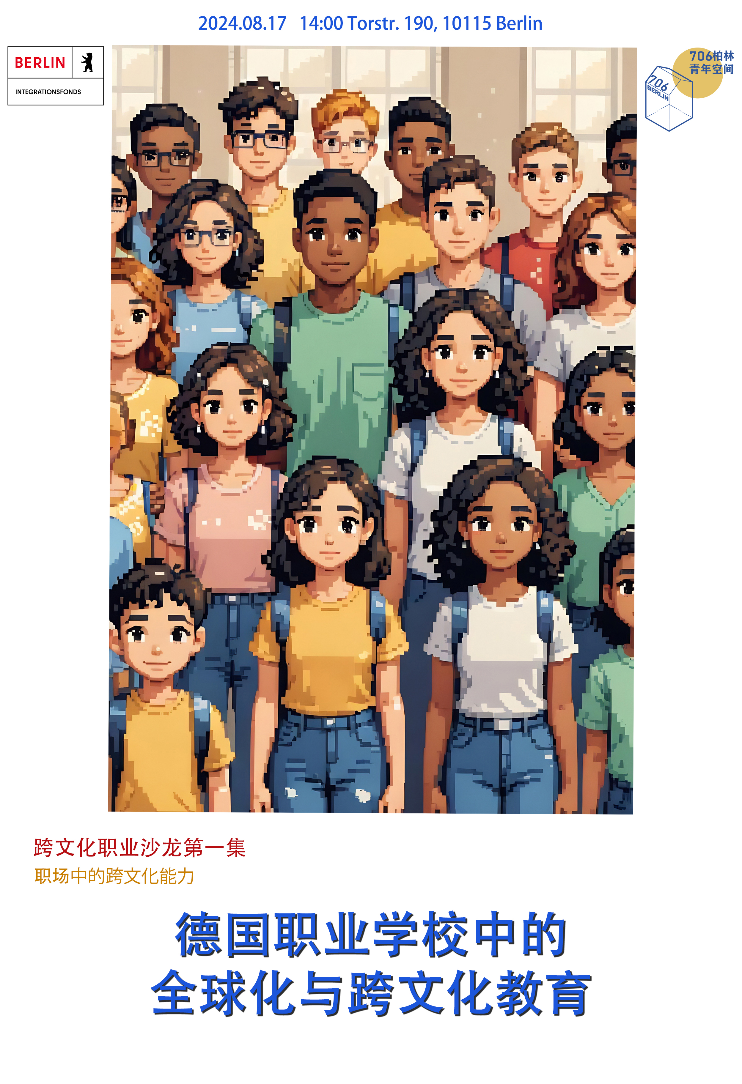 世界大学服务社( WUS) 是联合国和联合国教科文组织认可的国际咨询组织。2016年起,世界大学服务社发起GRENZENLOS项目,该项目由德国联邦经济合作与发展部的ENGAGEMENT GLOBAL基金资助,在巴登-符腾堡州、巴伐利亚州、黑森州、莱茵兰-普法尔茨州和萨尔州的职业学校, 就17个联合国可持续发展目标(SDG)和2030年议程等主题开展教学改革。 本次沙龙活动发起人作为第一批接受世界大学服务社GRENZENLOS项目培训并获得“全球化与跨文化教育促进者”资格证书的人员之一,于2016-2019年被派往黑森州和莱茵兰-普法尔茨州,对6所职业学校的师生进行了10场全球化与跨文化教育培训。这些培训过的学校被列入黑森州环境部可持续教育网络顶层设计,他的课堂实践在黑森州经济部进行展示。 本次活动,他将为大家分享这些课堂实践中的逸闻趣事和冲突挑战,尤其面对同处于一个课堂的青春期学生、更年期学生,或身心障碍学生以及不同种族不同宗教背景的学生,并和大家讨论如何用跨文化的能力来应对和处理职业场景中的多元文化摩擦。 **活动时间** 2024年8月17日(周六)14:00--18:30 **活动地点** Torstraße 190, 10115 Berlin **活动流程** - 自我介绍 - 发起人分享 - 分组活动:跨文化“情景再现“ 情景一:抉择与平衡 情景二:共存与尊重 情景三:责任与关怀 - 自由交流 **活动费用**:3欧元(协会会员免费) (link: https://docs.google.com/forms/d/e/1FAIpQLSdBD1vWhMOPpmiKYcGPUBESYKZO2KlssH6aoT306slwCuKV1g/viewform text: 点击此处报名)
